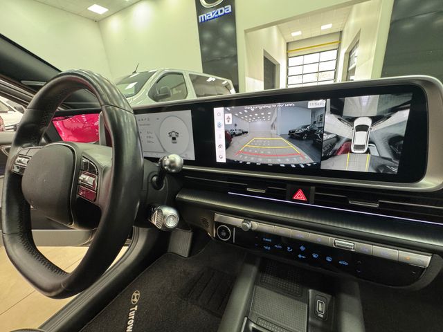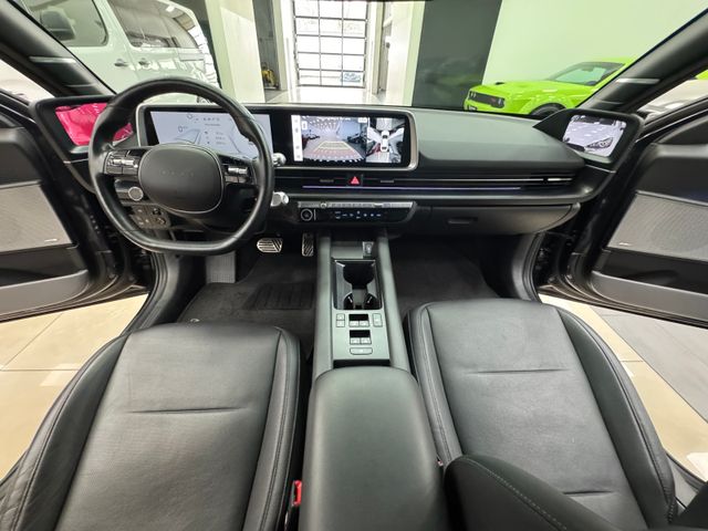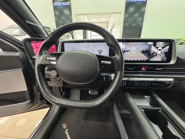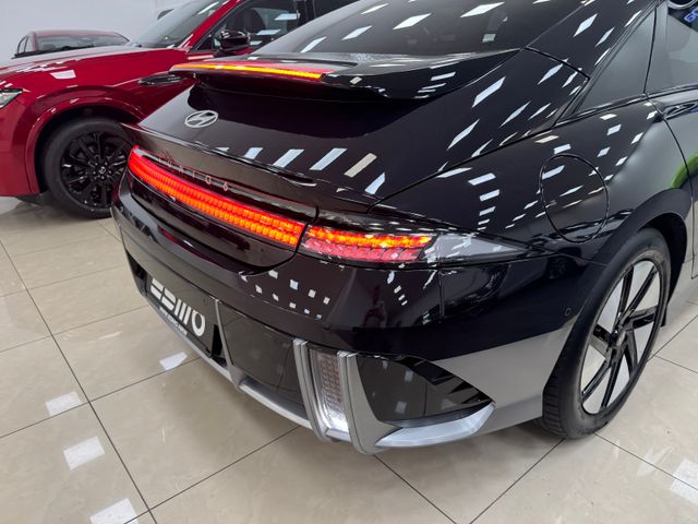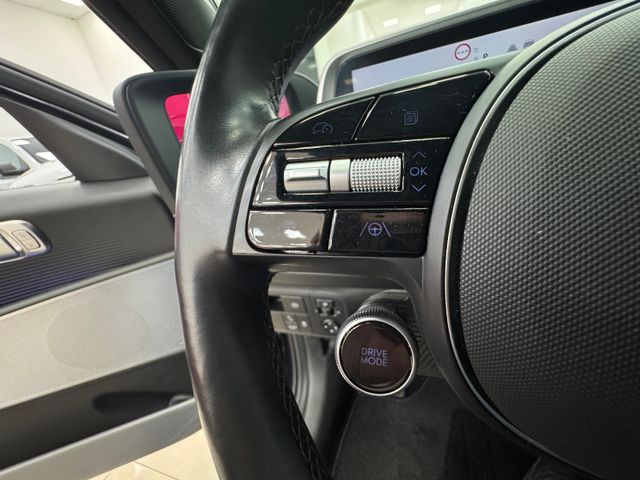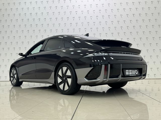 Ablagebox / Stauraum unter Kofferraumboden, Ablagetasche an Vordersitzlehnen, Airbag Beifahrerseite, Airbag Beifahrerseite abschaltbar, Airbag Fahrerseite, Ambiente-Beleuchtung einstellbar, Anhängerkupplung Vorbereitung, Antriebsart: Allradantrieb, Audio-Navigationssystem, Außenspiegel elektr. anklappbar, Außenspiegel Oberschale Wagenfarbe, Außenspiegel Unterschale schwarz lackiert (Hochglanz), Batterieheizsystem, Blinkleuchten LED in Außenspiegel integriert, BOSE-Paket, Dachspoiler, Einschaltautomatik für Fahrlicht / Lichtsensor, Elektr. Bremskraftverteilung, Elektromotor 239 kW (cont. 81 kW, Dual-Elektromotor), Elektron. Stabilitätskontrolle (ESC) mit Bremsassistent, Fahrassistenz-System: aktiver Spurhalteassistent (LKAS, Lane Keep Assist System), Fahrassistenz-System: aktiver Totwinkel-Assistent, Fahrassistenz-System: Aufmerksamkeits-Assistent, Fahrassistenz-System: Ausstiegswarnung, Fahrassistenz-System: Autobahnassistent 2.0 (Highway Driving Assist, HDA 2.0), Fahrassistenz-System: Autonome Notbremsfunktion inkl. Frontkollisionswarnung (FCA), Fahrassistenz-System: Berganfahrhilfe, Fahrassistenz-System: Fahrprofilauswahl (Drive Mode), Fahrassistenz-System: Fernlichtassistent, Fahrassistenz-System: Insassenalarm (Rear Occopant Alert, ROA), Fahrassistenz-System: Multikollisionsbremse (Multi Collision Brake), Fahrassistenz-System: Querverkehrs-Assistent Heck (Cross Traffic), Fahrassistenz-System: Sicherheitssystem mit automatischem Notruf (ERA GLONASS / eCall), Fahrassistenz-System: Spurfolgeassistent (Lane Following Assist, LFA), Fahrassistenz-System: Verkehrszeichenerkennung, erweitert (Geschwindigkeits-Regel-/Begrenzeranlage), Fensterheber elektrisch vorn und hinten, mit Auf-/Ab-Automatik, Fensterrahmen Zierleisten schwarz glänzend, Freisprecheinrichtung Bluetooth, Frontscheibe Verbundglas, Frontschürze, Heckschürze und Seitenschutzleisten in Kontrastfarbe, Frontstaufach / Frunk (Kofferraum, vorn), Getriebe für Elektrofahrzeug, Getränkehalter hinten, Getränkehalter vorn, Gurtstraffer, Head-up-Display, Heckklappe/-Deckel elektr. betätigt (Öffnung, sensorgesteuert), Heckleuchten LED (Pixel-Design), Heckscheibe heizbar, HV-Batterie 77,4 kWh (Lithium-Ionen), Induktionsladeschale für Smartphone, Innenspiegel mit Abblendautomatik, Instrumentenanzeige Farbdisplay 12,25 Zoll, Isofix-Aufnahmen für Kindersitz, Karosserie: 4-türig, Klimaautomatik 2-Zonen, Kopf-Airbag-System, Kopfstützen hinten verstellbar, Kühlergrill, Aktive Luftklappen, regelbar, Ladekabel mit Typ 2-Stecker, Ladevorrichtung On-Board-Lader (3-Phasen), LED-Pixel am Lenkrad (interaktiv), Lendenwirbelstütze Sitz vorn links, elektr. verstellbar, Lendenwirbelstütze Sitz vorn rechts, elektr. verstellbar, Lenkrad mit Schaltwippen, Lenksäule (Lenkrad) höhenverstellbar, Lenksäule (Lenkrad) längsverstellbar, Leseleuchten vorn und hinten LED, Lifetime MapCare (Internetbasierende Dienste), LM-Felgen, Luftdüsen hinten, Matrix-LED-Scheinwerfer, Mittelarmlehne hinten, Navigationsbasierte Adaptive Geschwindigkeitsregelanlage (Tempomat) mit Abstandsregelung (NSCC), Nebelschlussleuchte LED, Notladekabel (ICCB), Park-Paket, Parkbremse elektrisch (EPB), Pedale Aluminium, Radioempfang digital (DAB+), Reifen-Reparaturkit, Reifendruck-Kontrollsystem, Rückfahrkamera, Rücksitzlehne geteilt/klappbar, Rücksitzlehne umklappbar mit Fernentriegelung im Kofferraum, Schalt-/Wählhebel (Shift by Wire), Scheibenbeschlagerkennung / Regelung, Seitenairbag vorn, Seitenairbag vorn mitte (Central Airbag), Service-System: Online Update OTA (Over The Air), Service-System: Remote Services (Blue Link), Sicherheitsgurte vorn höhenverstellbar, Sitz vorn links elektr. verstellbar, Sitz vorn links höhenverstellbar, Sitz vorn rechts elektr. verstellbar, Sitz vorn rechts höhenverstellbar, Sitz-Paket, Sitzheizung vorn, Smartphone Schnittstelle (Apple CarPlay & Android Auto), Sonnenblenden mit Spiegel, Start-Stop-Knopf, Steckdose (12V-Anschluß) 2.Sitzreihe, Steckdose (12V-Anschluß) vorn, Türgriffe außen ausfahrbar / versenkbar, elektrisch, Türgriffe außen Wagenfarbe, Uniq-Paket, USB-Anschluss (Typ C, 2-fach), USB-Anschluss Mittelkonsole, USB-Ladeanschlüsse (2-fach, Typ C) für 2.Sitzreihe, Vehicle-to-Load Stecker (V2L), Verglasung getönt, Verglasung hinten abgedunkelt (Privacy Glass), Vorheizsystem für Batterie, Warnanlage für Sicherheitsgurte, Fahrer-/Beifahrerseite, Wärmepumpe für Heizungs-/Klimaanlage